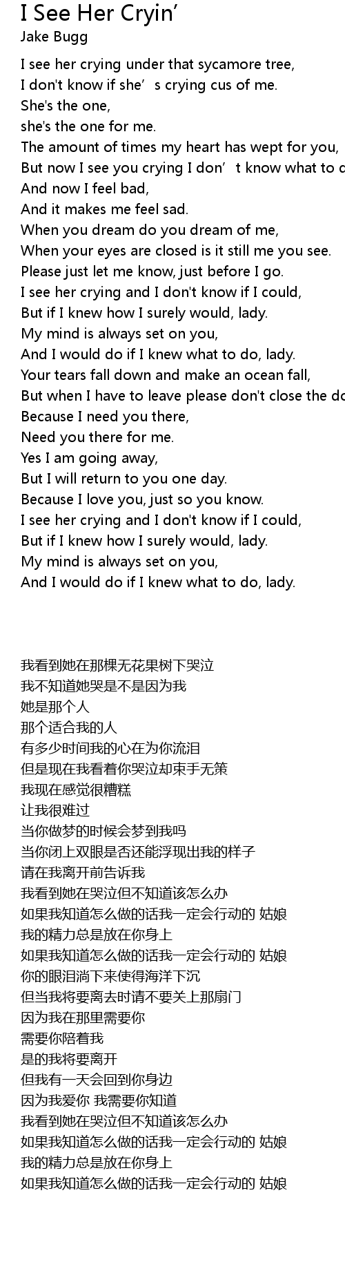 | [00:27.187] | But now I see you crying I don' t know what to do. |