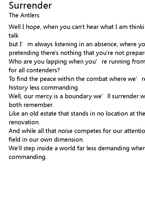| Well, our mercy is a boundary we' ll surrender when love is a safer place we both remember. | |