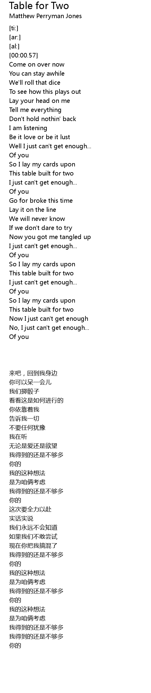 Table for Two Lyrics