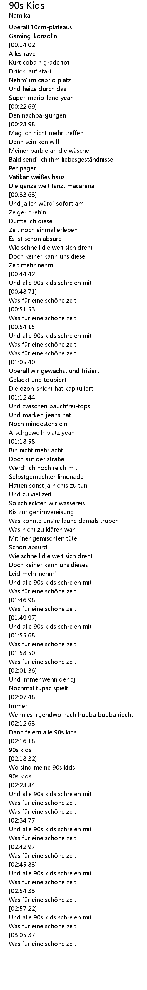 | [00:45.01] | Und alle 90s kids schreien mit |