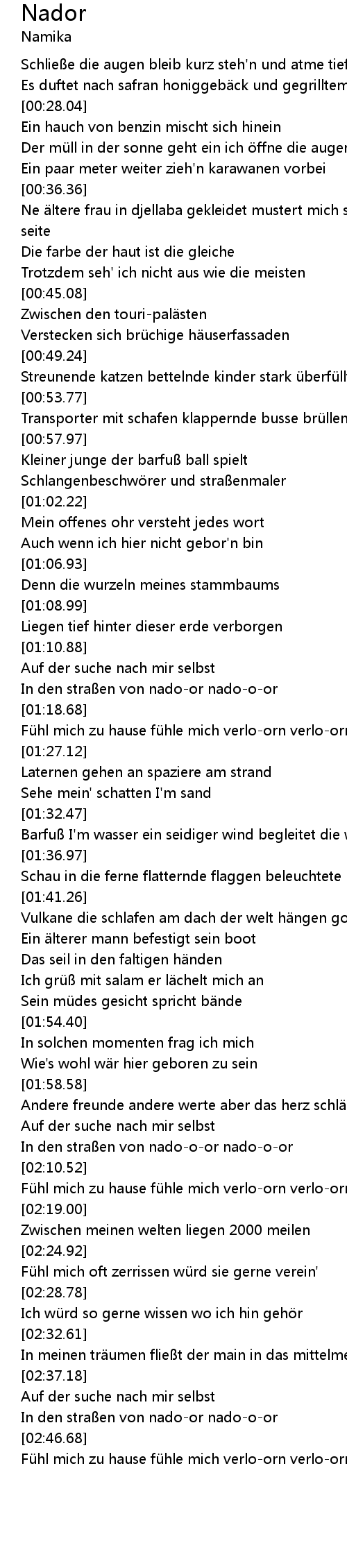 | [02:05.87] | In den stra en von nadooor nadooor |
