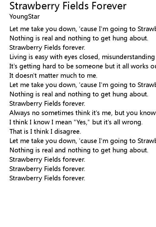 Let me take you down, 'cause I'm going to Strawberry Fields. |