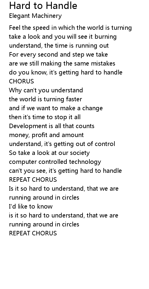 can't you see, it's getting hard to handle |