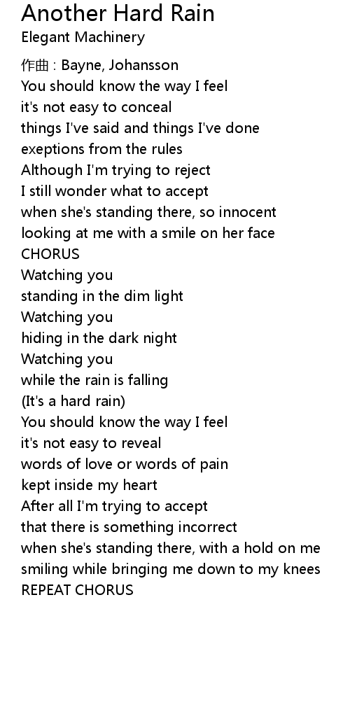 | Song | Another Hard Rain |