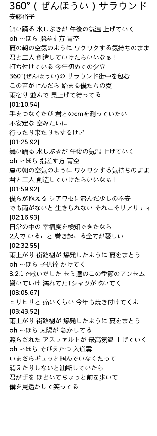 | [00:48.07] | 360°(ぜんほうい)の サラウンド街中を包む |
