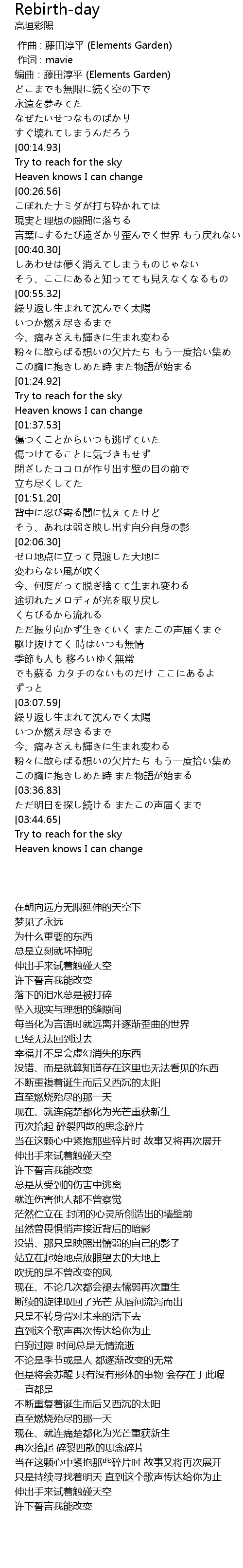 | [03:37.51] | ただ明日を探し続ける またこの声届くまで |