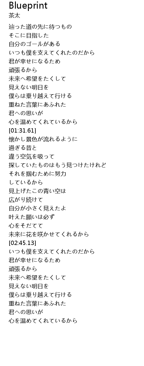 | [01:55.03] | 探していたものはもう見つけたけれど |