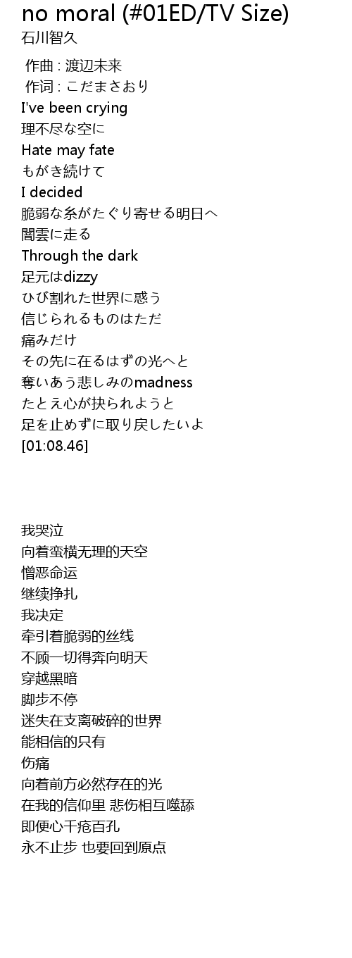 no moral (#01ED/TV Size) Lyrics
