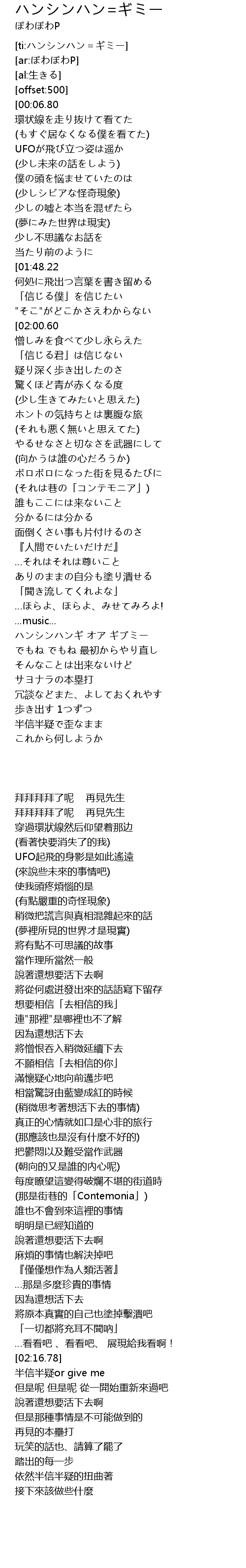 | [01:00.58][02:00.60] | まだ生きていたいから |