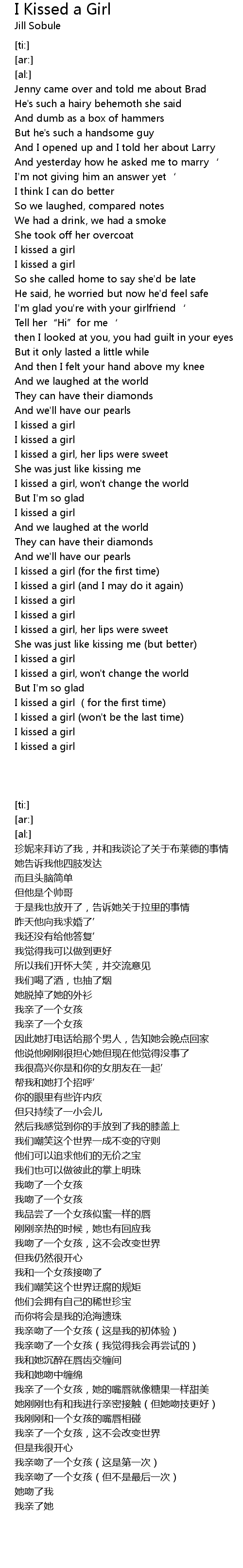 | [01:40.72] | I kissed a girl, her lips were sweet |