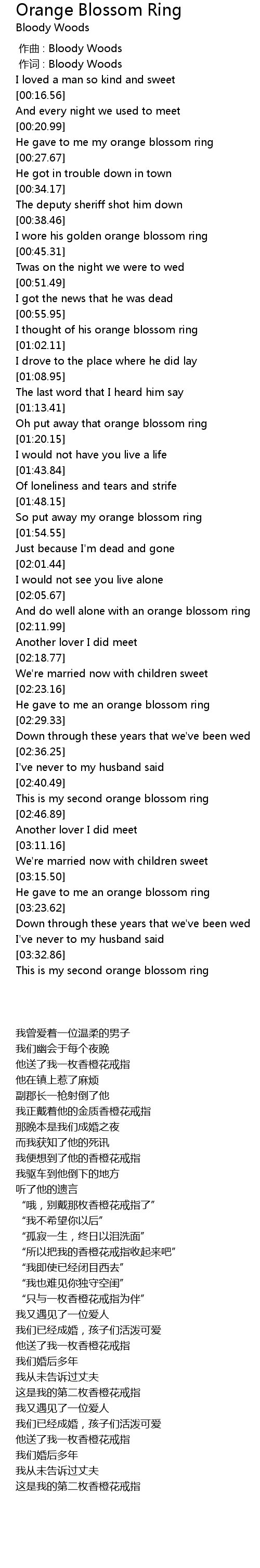 | [03:15.73] | He gave to me an orange blossom ring |