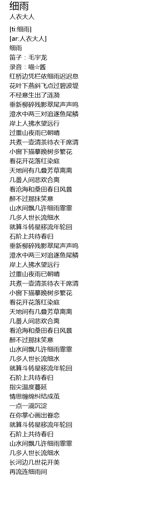 | [01:39.18] | 山水间飘几许细雨霏霏 |
