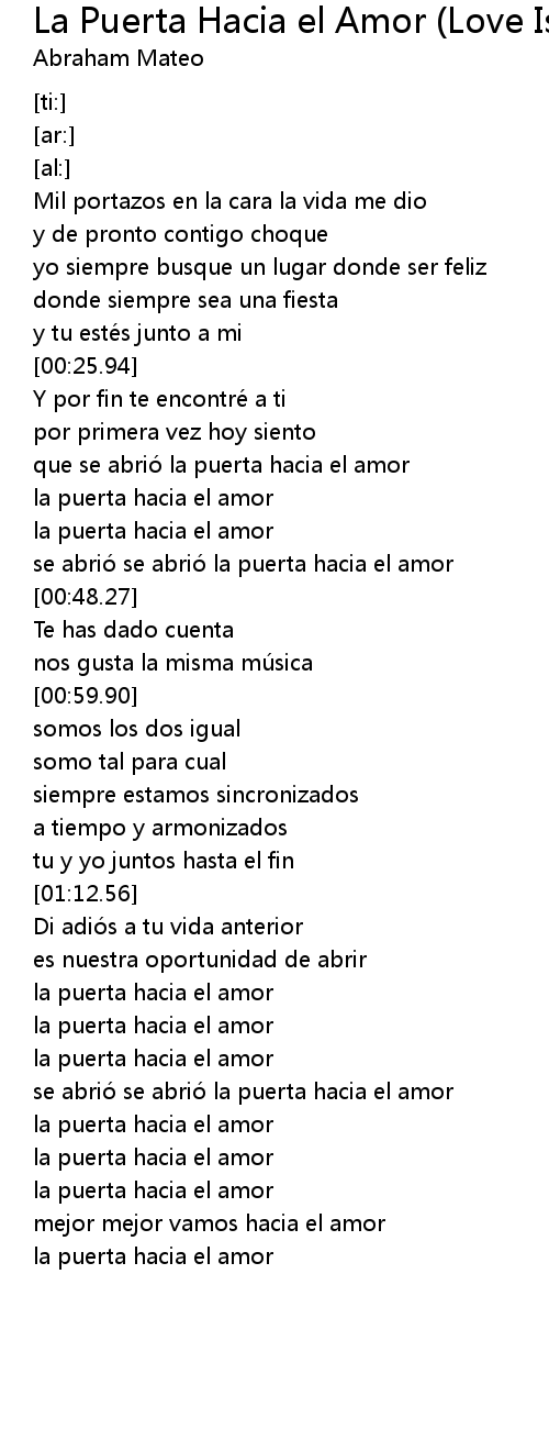 | [01:34.37] | se abrió se abrió la puerta hacia el amor |