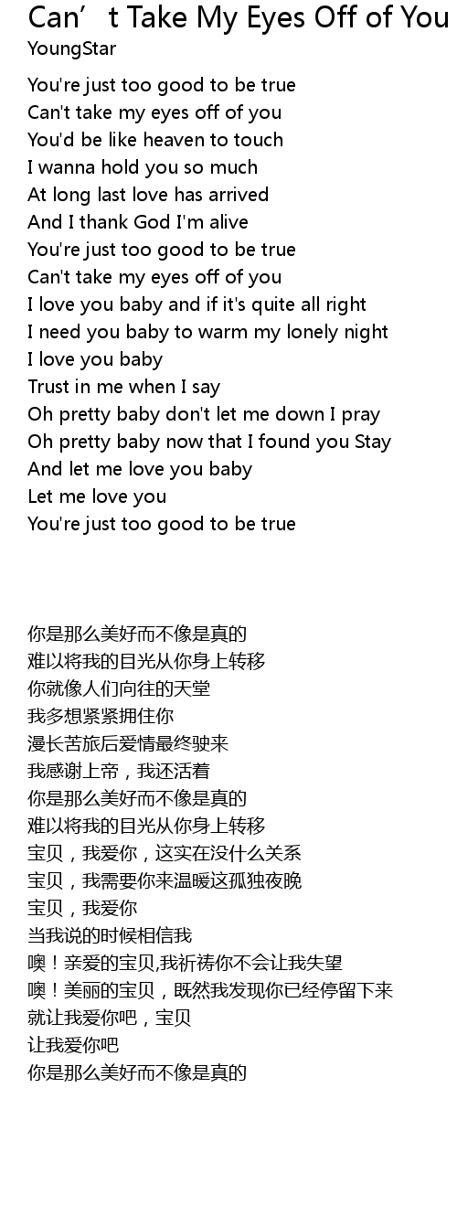 Can’t Take My Eyes Off of You Can' t Take My Eyes Off of You Lyrics