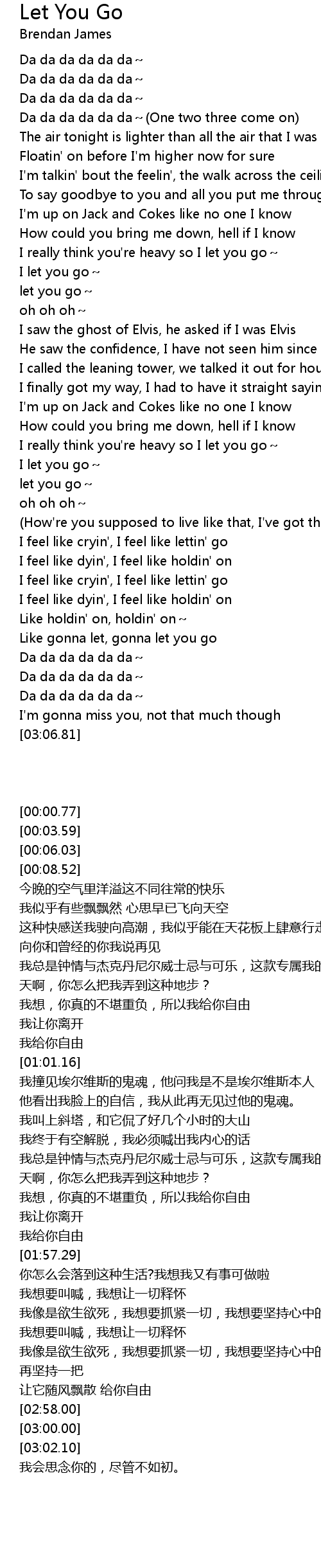 | [00:40.68] | I really think you' re heavy so I let you go |