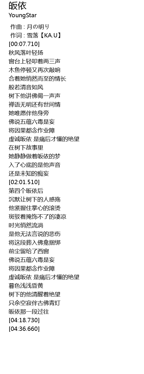 | [04:07.090] | 只余空寂伴古佛青灯 |
