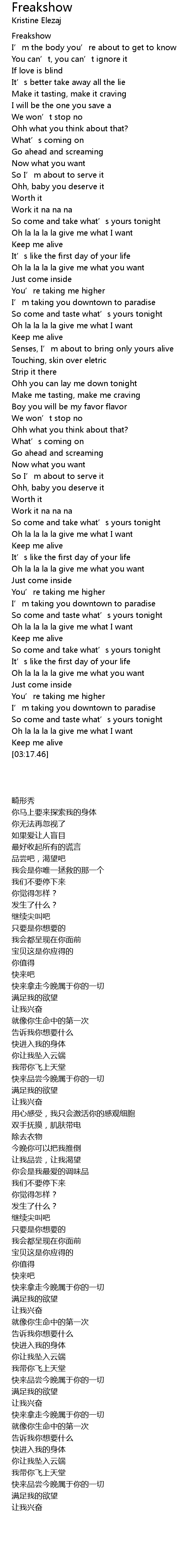 | [00:13.56] | Freakshow |