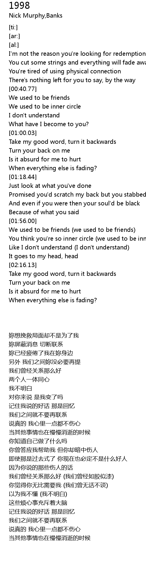 | [01:58.44] | We used to be friends (we used to be friends) |