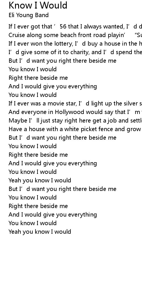 | Song | Know I Would |
