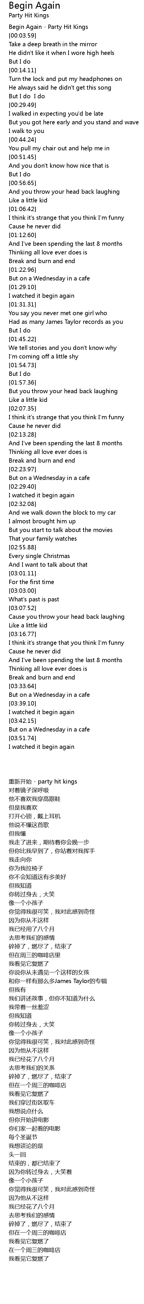 Begin Again - Party Hit Kings |