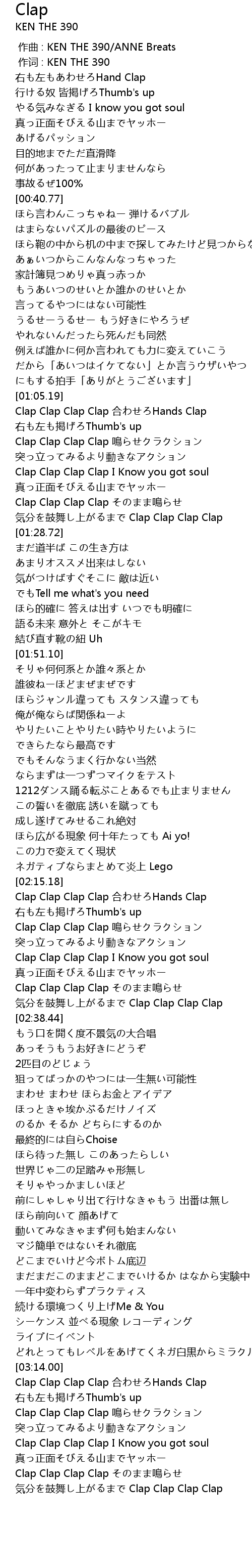 | [03:14.14] | Clap Clap Clap Clap he Hands Clap |