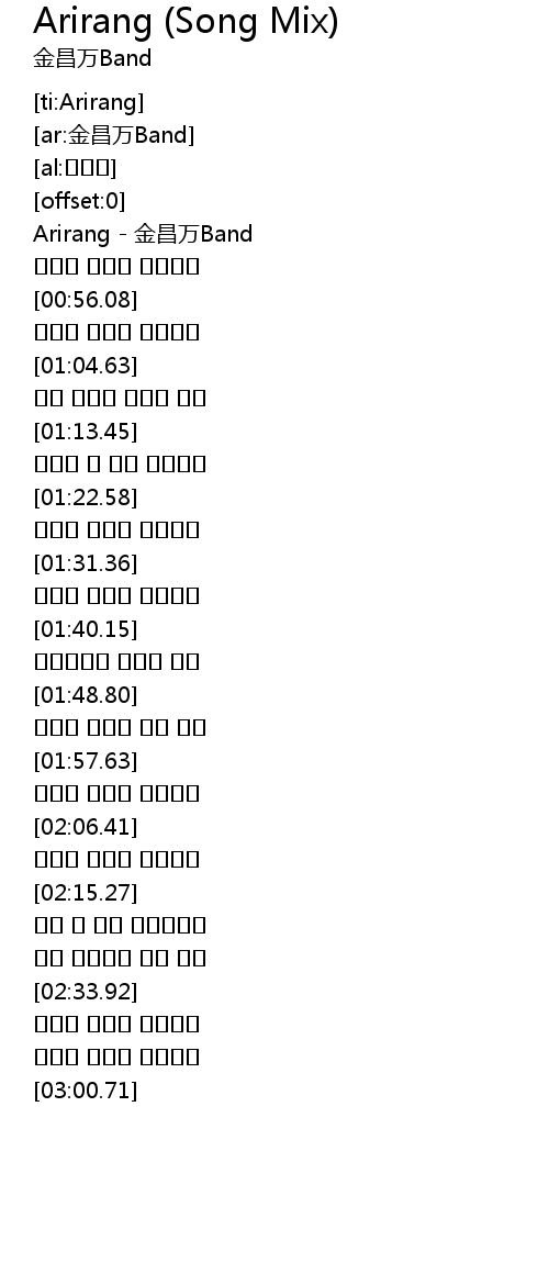 | [00:01.46] | Arirang - 金昌万Band |