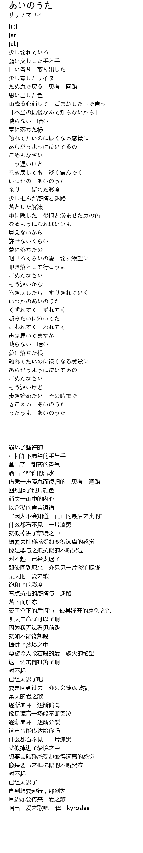 | [02:19.52] | 咽せるくらいの愛 壊す絶望に |