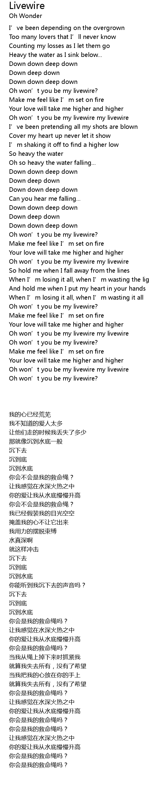 | [02:22.97] | Oh won’t you be my livewire my livewire |