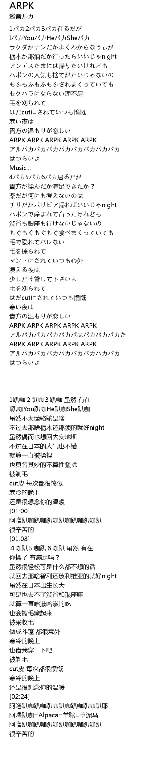 | [01:05] | アルパカパカパカパカパカパカパカパカ |