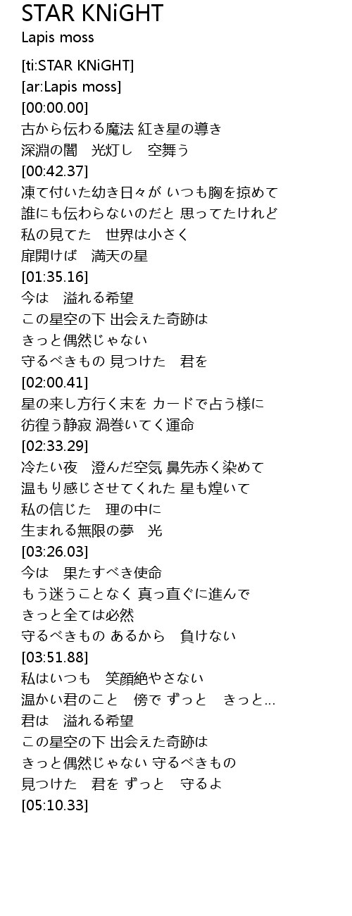 | [04:44.71] | この星空の下 出会えた奇跡は |