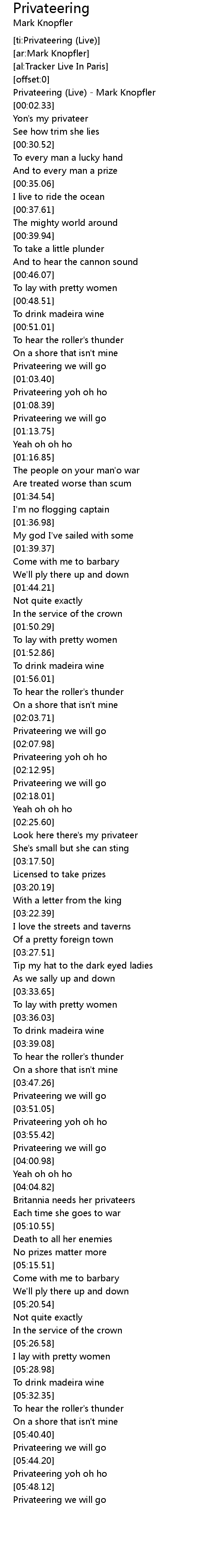 [ti:Privateering (Live)] |