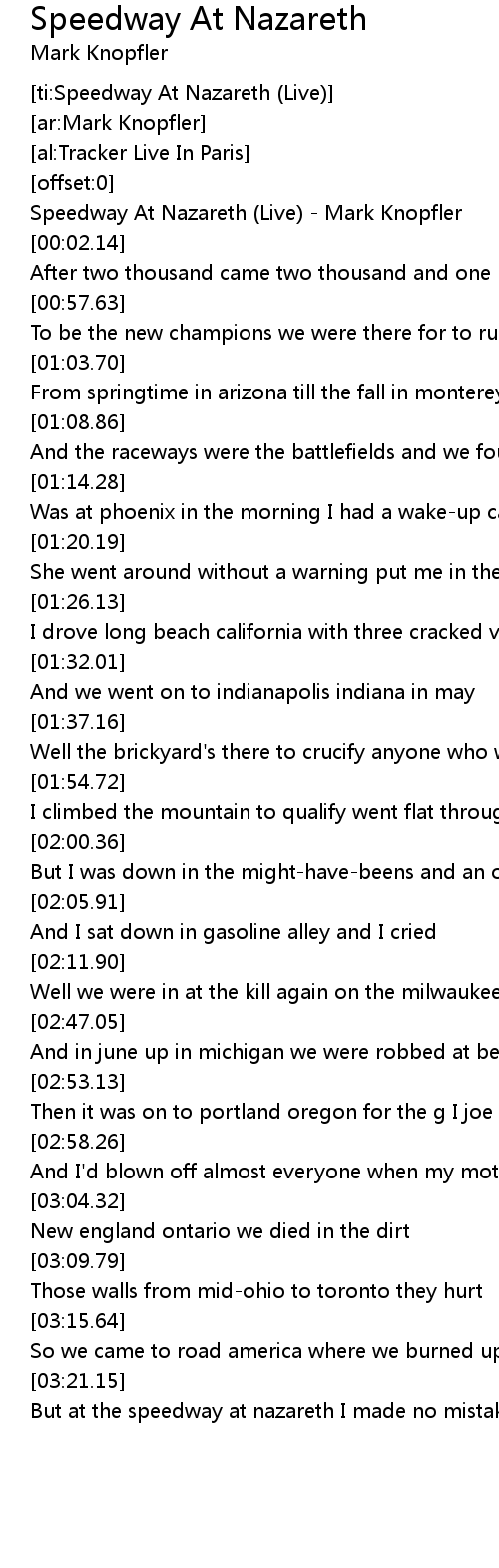 Speedway At Nazareth (Live) - Mark Knopfler |