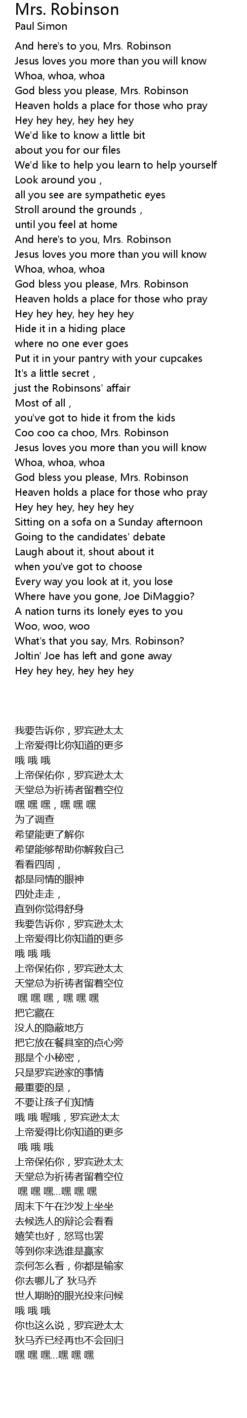 | [02:22.73] | God bless you please, Mrs. Robinson |