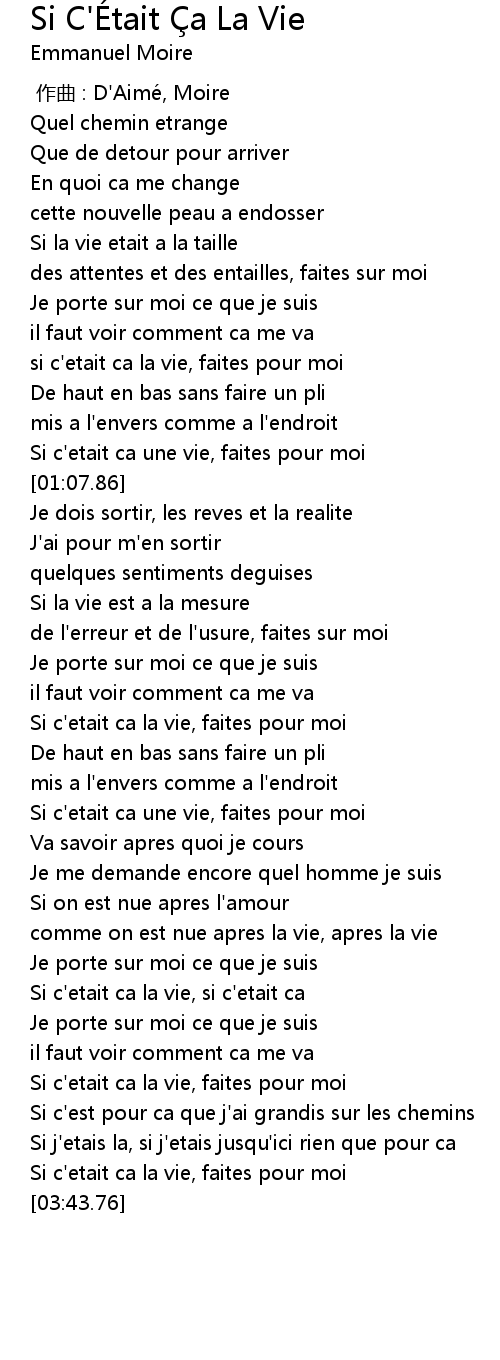 | [03:33.53] | Si c'etait ca la vie, faites pour moi |