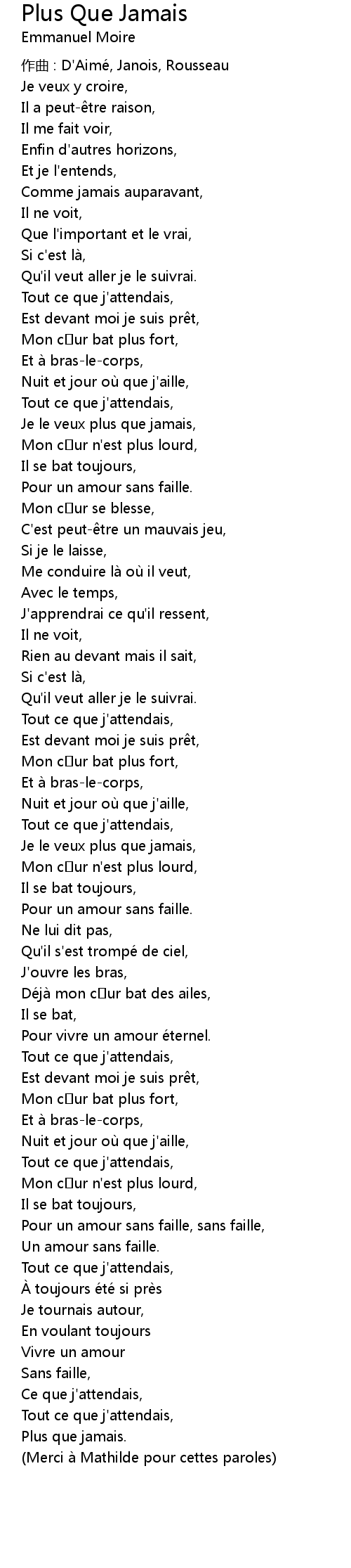 | 作曲 : D'Aimé, Janois, Rousseau | |