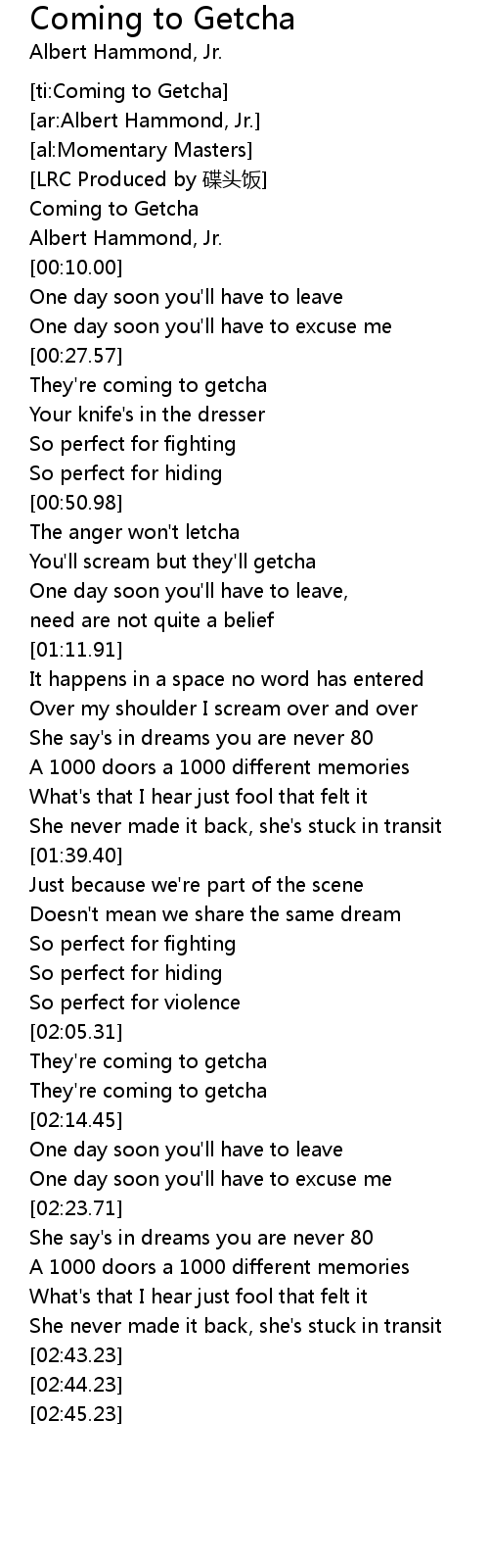 | [02:37.22] | She never made it back, she's stuck in transit |