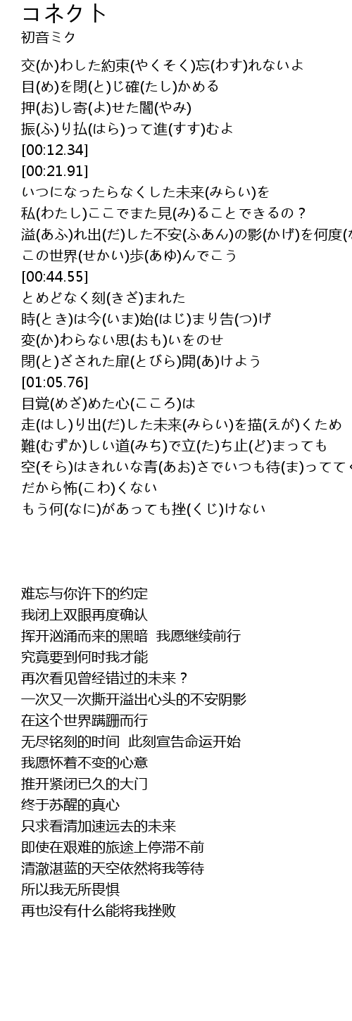 | [00:00.65] | 交(か)わした約束(やくそく)忘(わす)れないよ |
