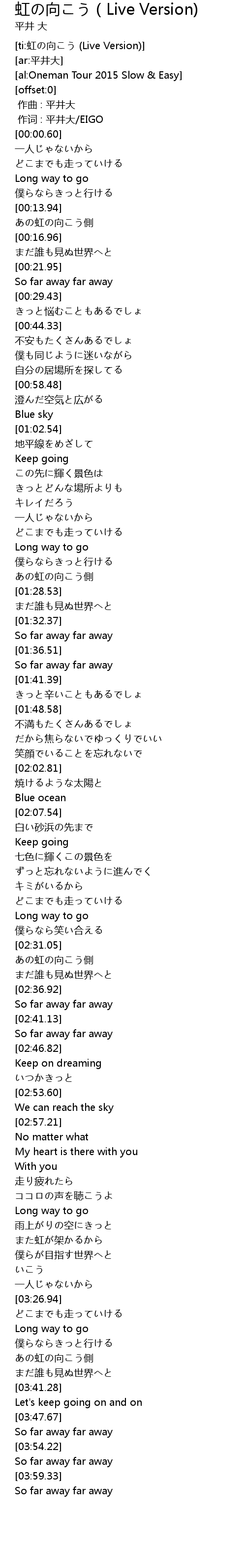 | [03:34.96] | あの虹の向こう側 |