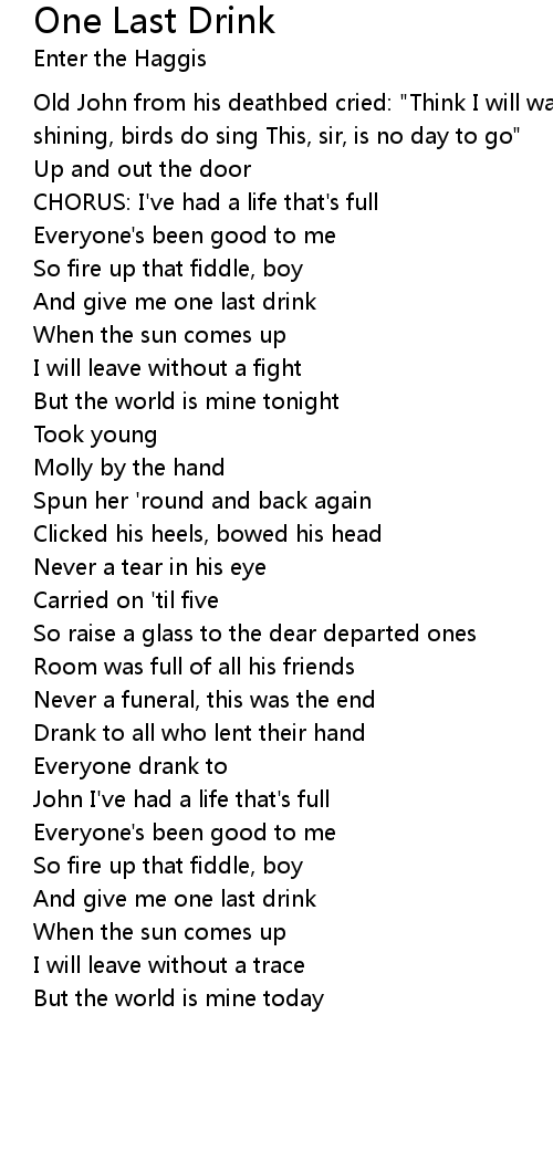 Old John from his deathbed cried: "Think I will wait 'til tomorrow to die Sun is shining, birds do sing This, sir, is no day to go" |