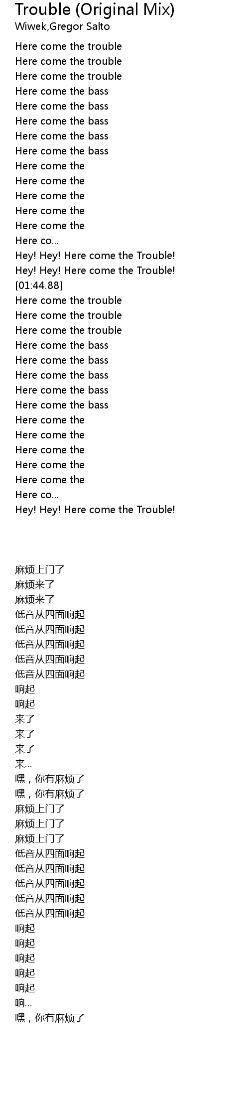 | [00:46.84] | Here come the trouble |