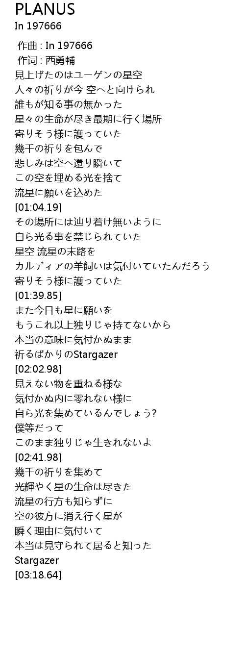 | [01:59.05] | 祈るばかりのStargazer |