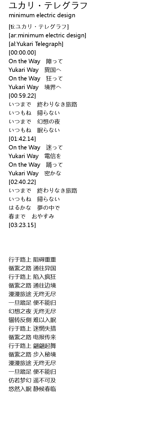 | [02:44.01] | いつまで 終わりなき旅路 |