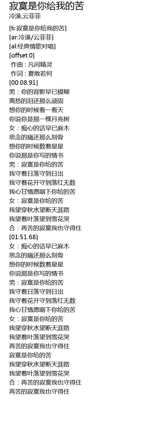 | [02:59.12] | 女:寂寞是你给的苦 |