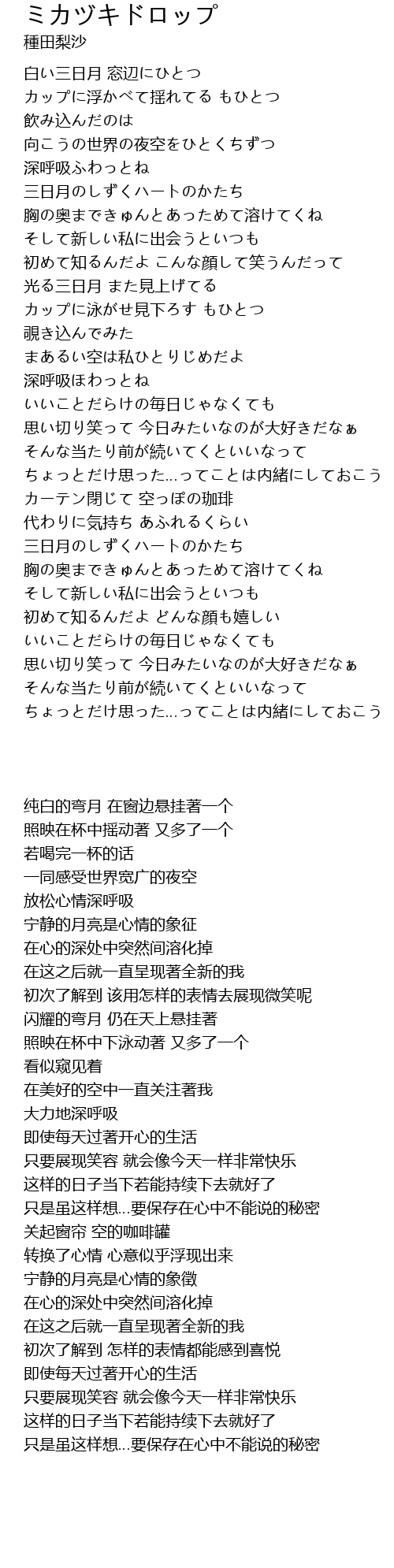 | [00:56.23] | 三日月のしずくハートのかたち |
