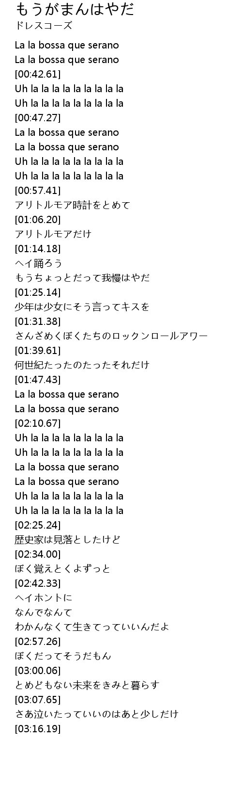 | [00:47.99] | La la bossa que serano |