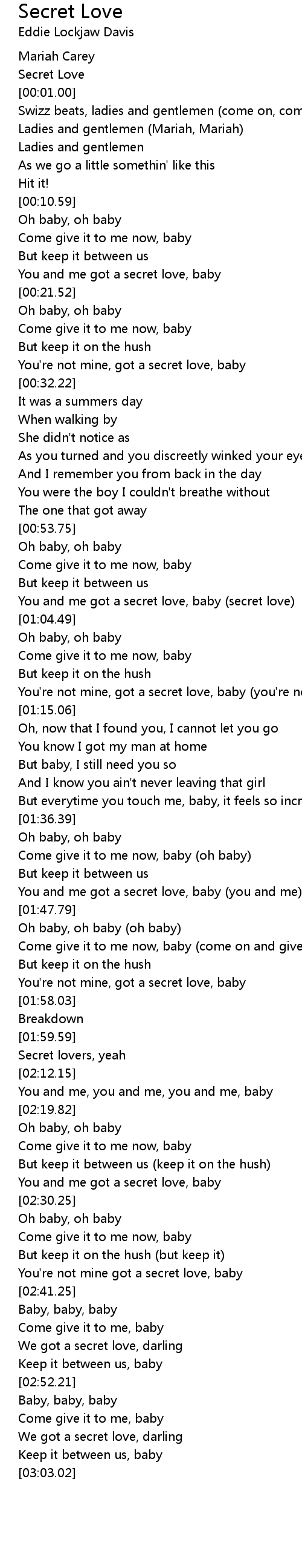 You and me got a secret love, baby (you and me) |