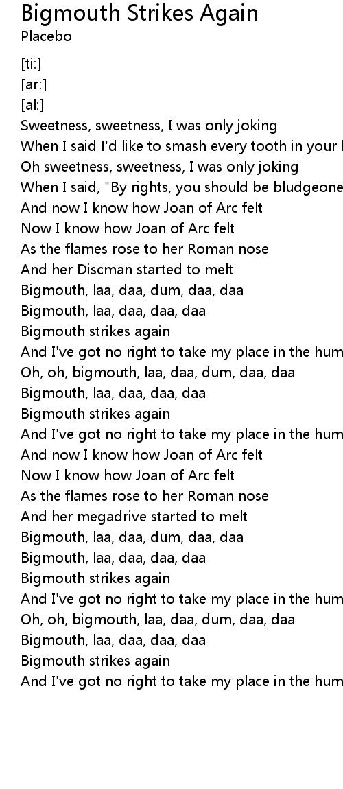 [01:33.44] Oh, oh, bigmouth, laa, daa, dum, daa, daa