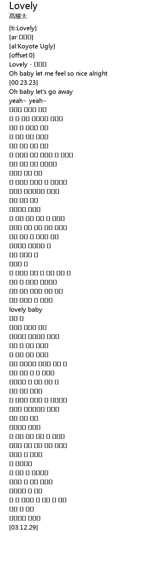 | [00:01.12] | Lovely - 코요태 |