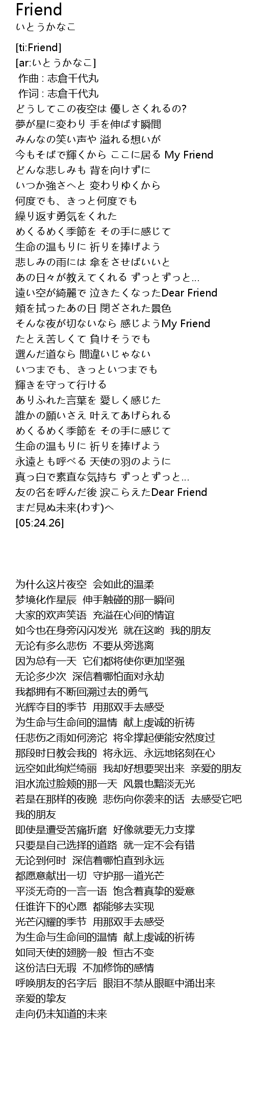 | [05:06.36] | yǒu míng hū hòu lèi Dear Friend |