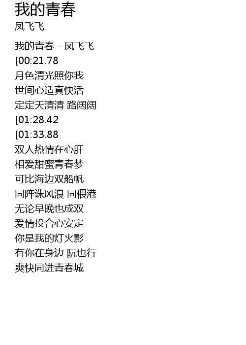 | [00:00.06] | 我的青春 - 凤飞飞 |